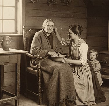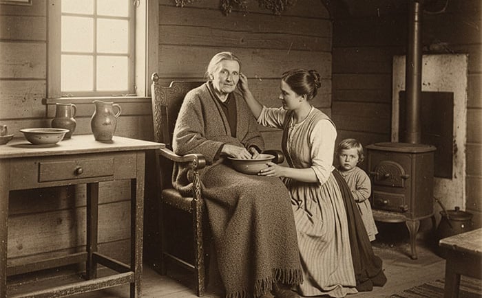 Der Mittelpunkt dieser Fürsorge war meist die Frau. Ehefrauen, Töchter und Schwiegertöchter trugen den größten Teil der Pflege. Sie wussten, wie man Wunden versorgt, Fieber senkt oder das Bett richtet – Wissen, das nicht aus Büchern, sondern aus Erfahrung weitergegeben wurde. Meist war es eine Pflicht ohne Diskussion, denn Fürsorge gehörte zur weiblichen Lebensaufgabe.