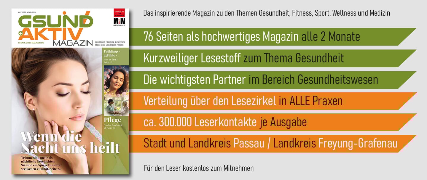 Wir würden uns freuen, Ihr Haus als Partner in der Region zu präsentieren, wenn das Magazin ab Januar 2026 in jeder Arztpraxis und bei Therapeuten über den Lesezirkel ausliegt – dort, wo Ihre Zielgruppe tatsächlich liest!